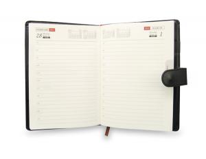 The two-tone Louis Monthly Day Planner is versatile in size, provides a maximum space for your daily meetings and appointments. Daily format is often broken-down by hourly segments. Contain a monthly calendar for long-term planning, this contemporary faux-leather cover accented with glazed Paris pattern design and tab closure is the perfect choice for a planner. Available in Black & Royal Blue.